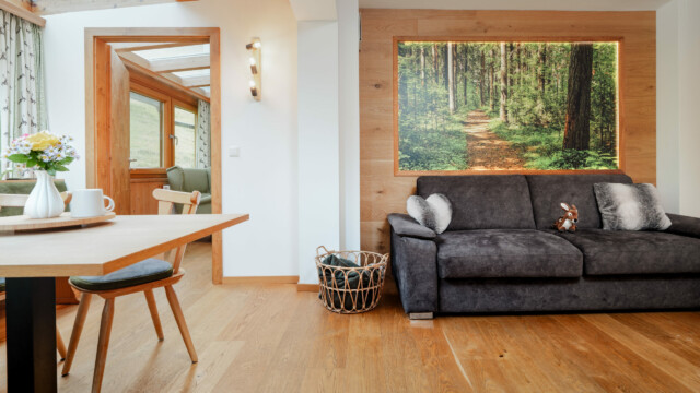 Die Steiermark gilt aufgrund der immensen Waldflächen bekanntlich als „das grüne Herz Österreichs“ und in unserer Waldwohnung kann man schon in der Früh seinen Kaffee im Wintergarten trinken und dieses saftige Grün des Waldes genießen. Mit etwas Glück taucht dann auch ein Reh oder Wildhase am Waldrand auf. Wie hätte diese Wohnung also sonst heißen sollen?