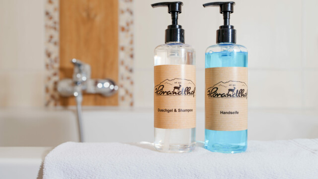 - Föhn und Duschgel + Seife
