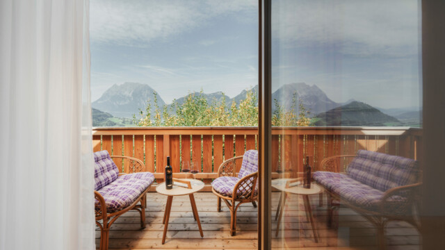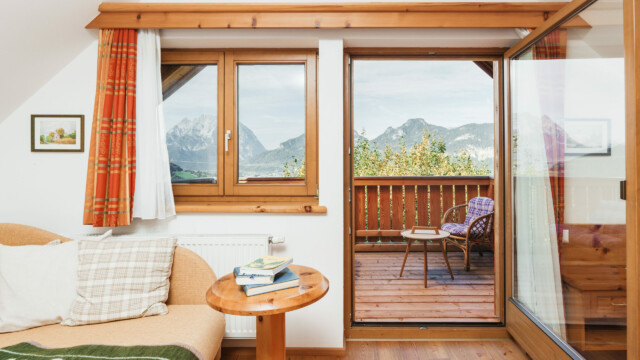 Die Zirbe gilt als „die Königin der Alpen“ und diese Königin wollten wir natürlich gerne in unser Haus einladen! Der Duft der Zirbe tut einfach gut, davon kann man sich in dieser Wohnung überzeugen. In einem Zirbenbett zu schlafen ist also nicht nur gesund, es hat auch etwas Königliches! Und wer dann genug von der duftenden Königin hat, kann am Balkon zu unserem König, dem Grimming, blicken und sich vom Ausblick mitreißen lassen. Fotos machen nicht vergessen!
